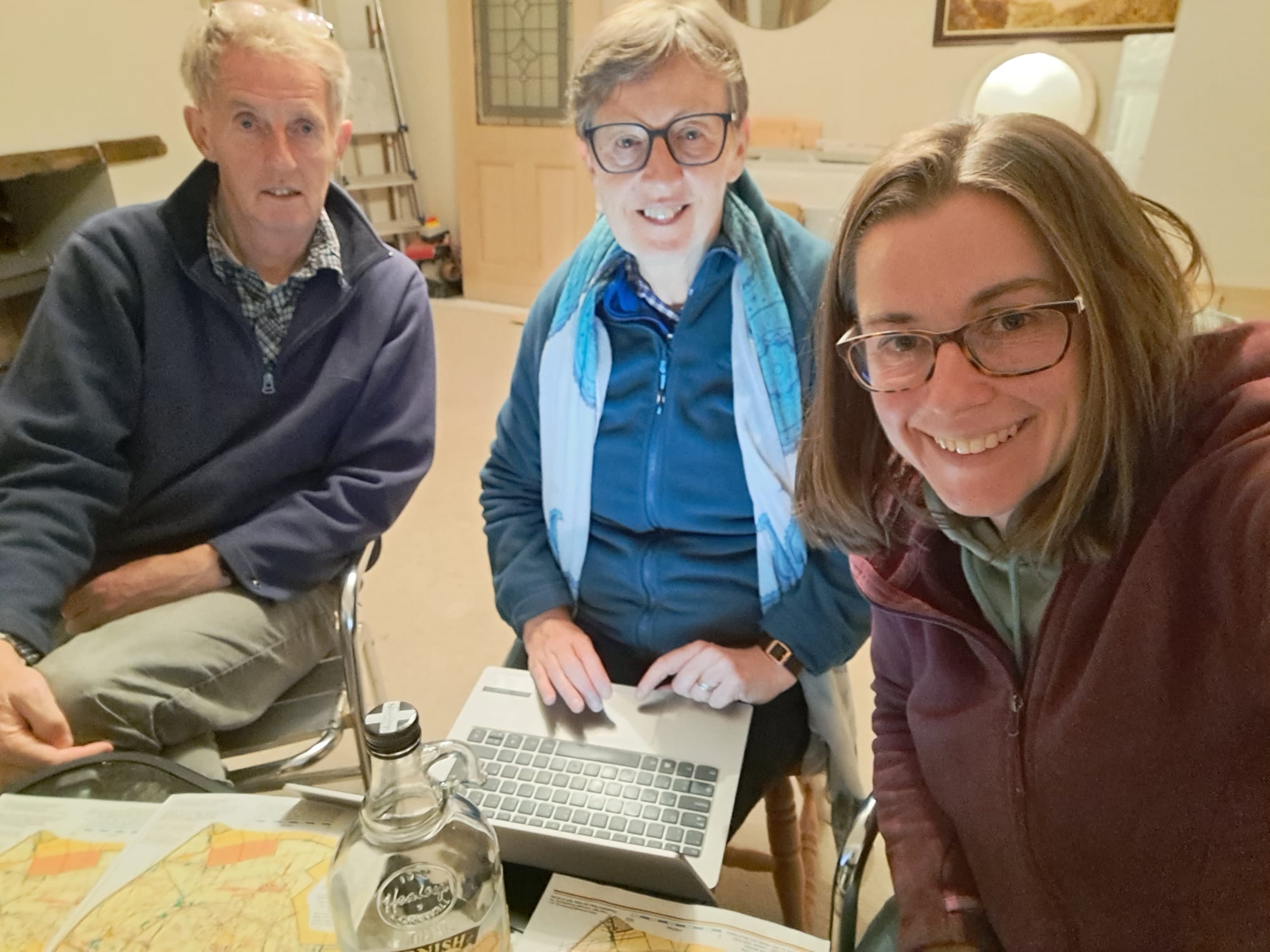 I am designing the course with the help of my parents, Judy and Alan Nesbit (Quantock Orienteers), and good friend James Buckley (Devon Orienteering). We went out in glorious sun and chilly mist. We exchanged draft course ideas across countries, and sat together at our computers to plan with the help of some cider. It was a lot of fun, and we hope you enjoy the result.
